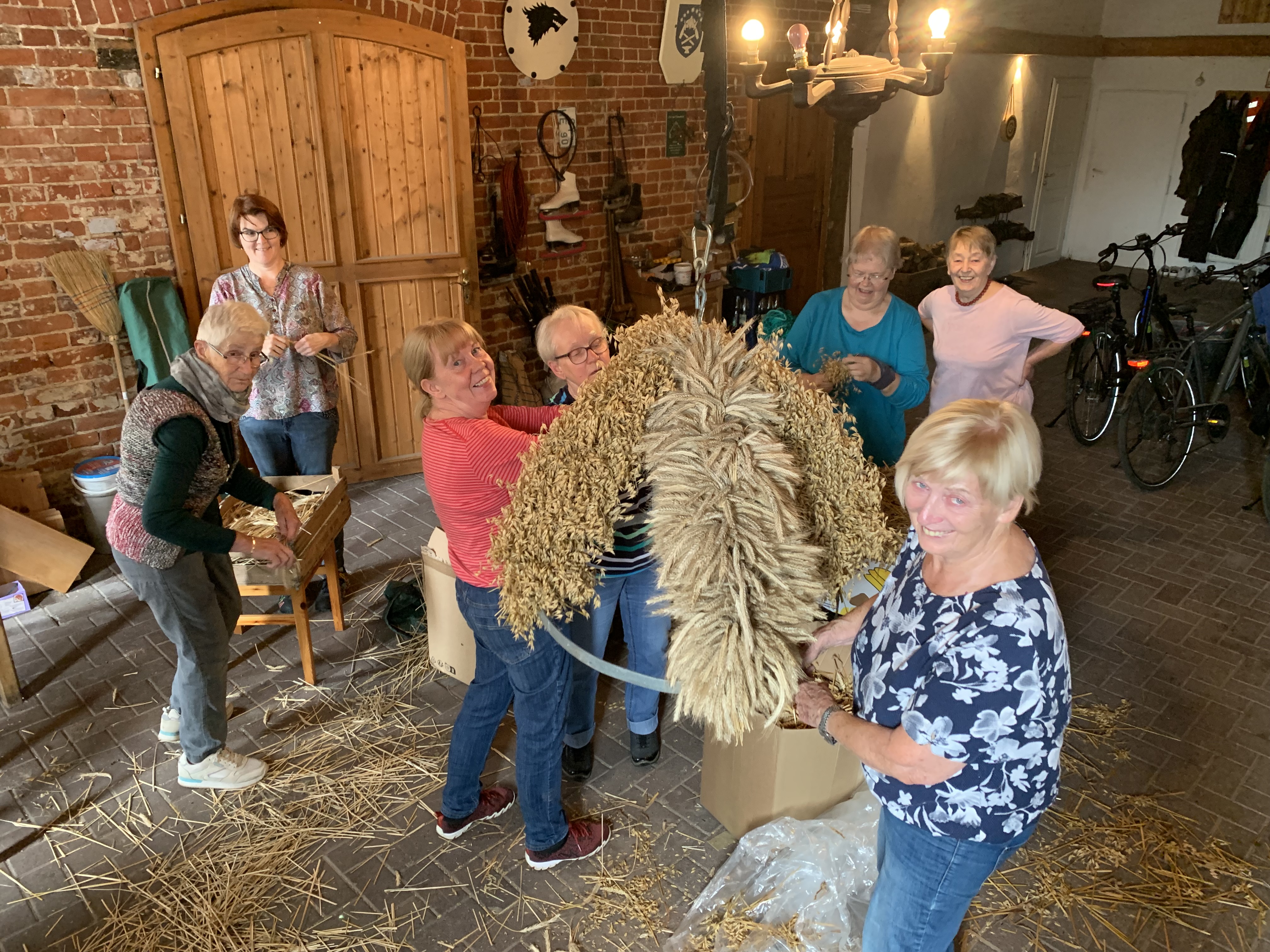 Am 24.09. um 14h ging es los. Die Erntekrone für den Erntedankgottesdienst am 06.10. ging in Produktion. Dank vieler vieler Hände konnten wir sie am Nachmittag fertigstellen. Ein großer Dank geht an Magret Evers, die ihre Diele zur Verfügung gestellt hat und für unser leibliches Wohl gesorgt hat. Weitere Helfer waren: Elke Kindl, Karin Blohme, Sabine Bielefeld, Marliese Landsberg und Erika Landsberg (nicht verwandt 😉) Christa Flohr, Katja Purnhagen und Christine Breckner.